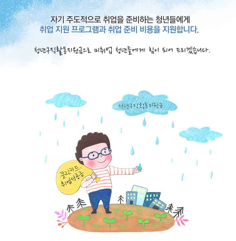 - 미취업 청년인 18세부터 34세까지 청년구직활동지원금을 지원하여 노동시장에서의 원활한 진입을 지원하기 위함