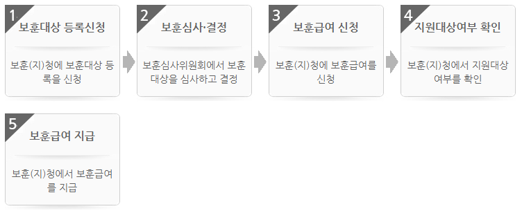 - 관할 보훈(지)청에 방문하거나 우편 및 인터넷으로 신청 가능합니다.