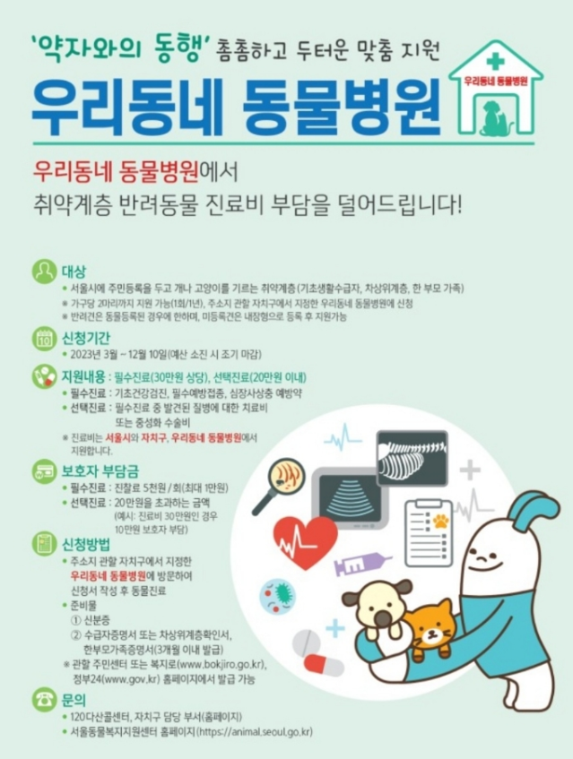 우리동네 동물병원 신청서를 통해 신청 가능합니다.
