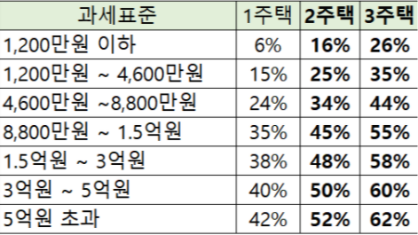 또한 조정지역에서의 주택인지에 따라 세금이 다르게 부과됩니다.