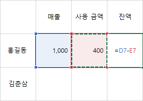 위와 같은 매출과 사용금액을 계산해야하는 경우가 있다고 가정한다면!