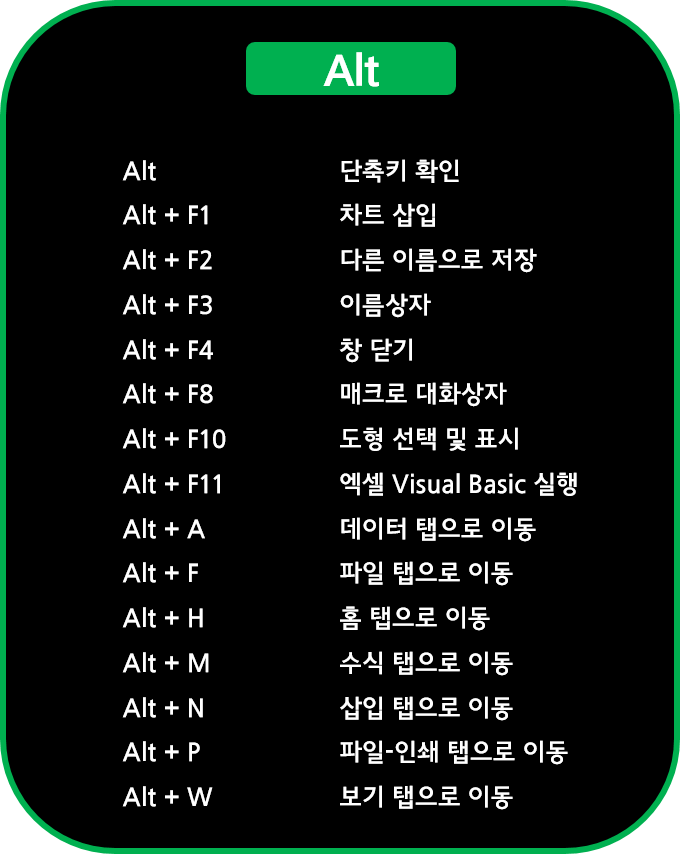 앞서 쉽게 함수들을 설명해드린 것 처럼 단축키 또한 이해하기 쉽게 설명해드릴게요~