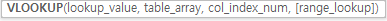 - Vlookup_value,table_array,col_index_num,[range_lookup]