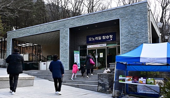 모노레일을 타고 올라가는길은 생각보다 경사가 있었어요!