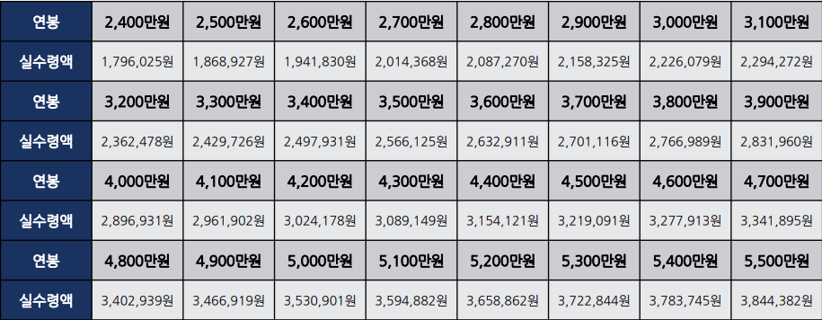 사람마다 연봉이 다르기에 세금의 차이는 있을 수 있으나, 대략적으로 표에서 확인할 수 있어서